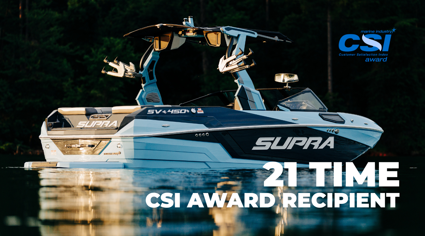 With its 21st consecutive Marine Industry CSI Award, Supra Boats continues a proud tradition of putting customers first. This milestone cements Supra as an undisputed leader in customer satisfaction within the towboat segment.