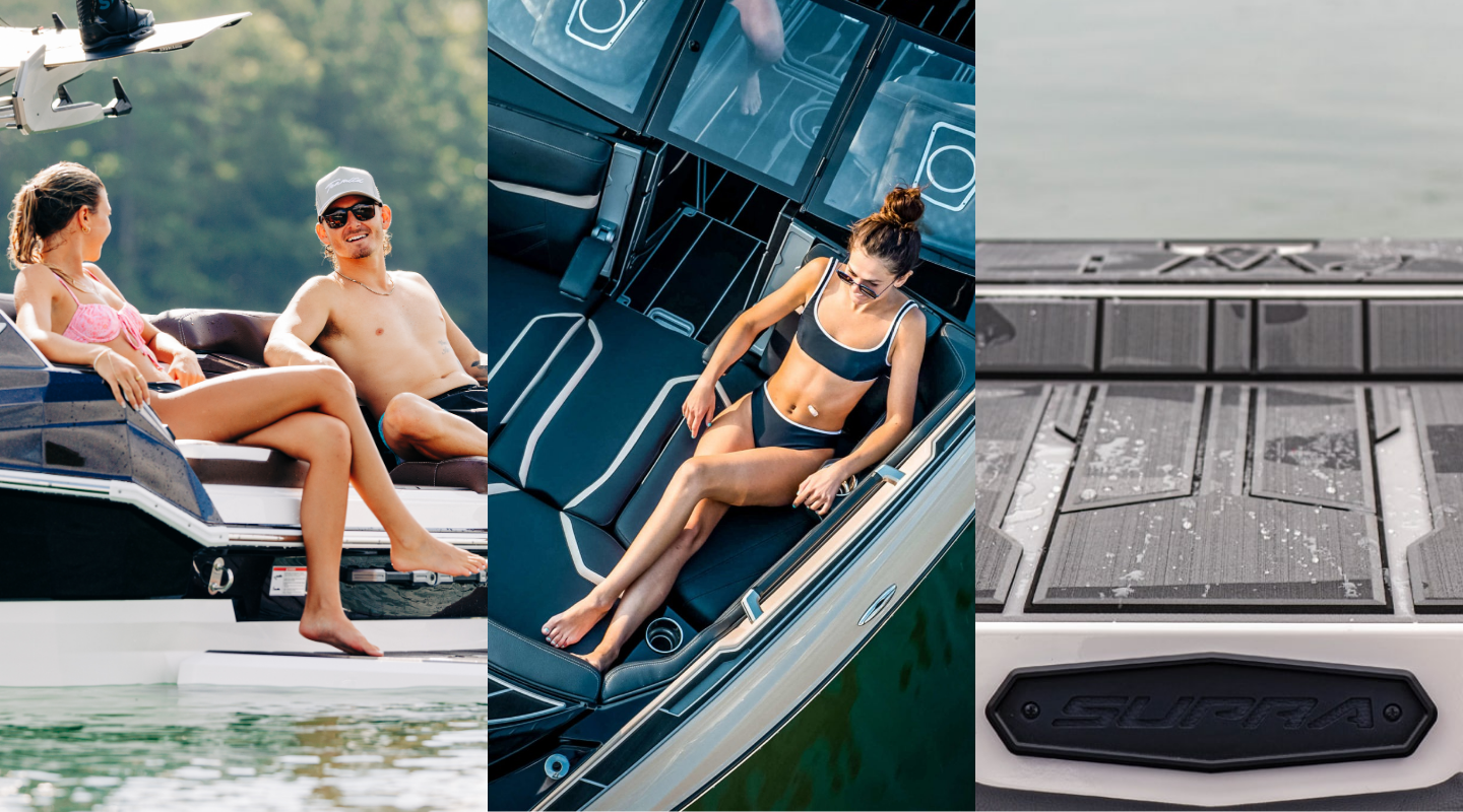 Experience ultimate comfort and convenience with Supra’s redesigned transom, now featuring built‑in lounge seats, an easy step‑in entry, and expanded transom trunk storage.